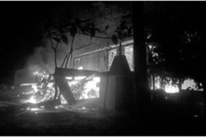 Guwahati, March 2, 2026: March 1, Sunday laga sham phane. Gauripur laga jute godown te dangor jui ulaishe koishe. Etu toh Gauripur Shamshan Mandir osor te ase...