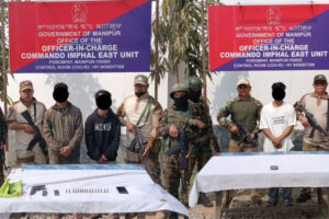 Imphal, March 1, 2026: Manipur police para United National Liberation Front (UNLF-Koirang faction) laga duata member ke dure she, extortion kurea karne Imphal...