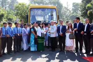 Itanagar, November 20, 2025: Wednesday din te. Governor K.T Parnaik para. NEEPCO CSR- Sponsored kurea laga school bus toh. Oju Welfare Association (OWA) khan...