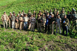 Agartala, November 14, 2025: Operation ekta te. Police team khan ke SDPO Vikash Senthia aru Officer in Charge (OC) Bijay Das para loi jai kina. Ganja laga ghas...