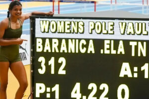 Bhubaneswar, 25 March : Baranica Elangovan, Tamil Nadu pora 29 saal laga athlete, National Indoor Athletics Championships opening day te Bhubaneswar te sob...