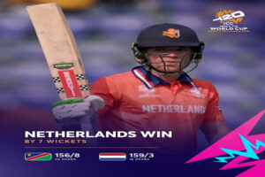 New Delhi, 10 February : ICC Men’s T20 World Cup-te, Netherlands aji Delhi laga Arun Jaitley Stadium te Group A match te Namibia ke 7 wickets pora harise...
