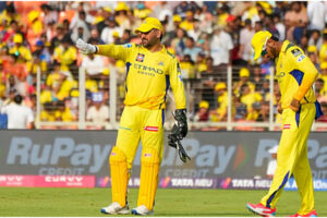 Chennai, 2 March : Former India aru Chennai Super Kings captain Mahendra Singh Dhoni, aru present team captain Ruturaj Gaikwad, aru anek squad member khan...
