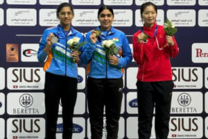 December 7, 2025: Maiki khan laga 10m air pistol competition teh. Suruchi Singh Phogat gold medal paisha. ISSF World Cup Final, Doha, Saturday teh. Etu laga...