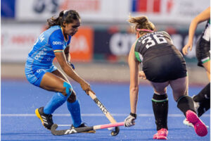 Santiago, 8 December : Indian Junior Mahila Hockey Team-te Wales ke 3-1 te harai diyese FIH Junior Women’s World Cup laga 9/16 position qualifier match-te...