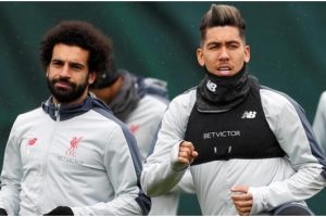 Champions League semi-final laga pohila leg te Liverpool khan forwards Mohamed Salah aro Roberto Firmino tweijun nadhaki kena Barcelona logot te...