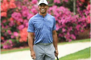 Tiger Woods toh Spain laga Jon Rahm aro China laga Li Haotong logote ekki logot Masters laga pohoila tweita round te tees off korise, tate Rory...