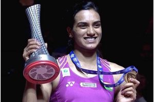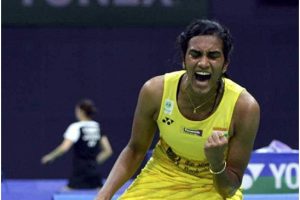 Guangzhou, China. Sunday Dec 16: Sunday din Guangzhou, China te PV Sindhu pora history ponaise. PV Sindhu pora Japan laga Nozomi Okuhara ke haraikena...