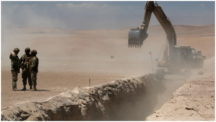 Chile, 18 March 2026: Chile laka nutun president pra kam shurukurishey border barrier opor te khali pass din hoi kina office te sworn in hwapichideh. Jose Antonio Kast site te dikishey Chile laka northern border along te Peru lokot Monday din te trench ke inspect kuribo leh aro khotakuribo leh construction workers khan lokot, hail kurishey first step ase taila campaign promise kuribo leh illegal immigration stem kuribo leh. Khali ektashuru portion planed barrier laka echa b cut kurishey arid Atacama desert te- ekta ditch olop feet wide aro deep.
