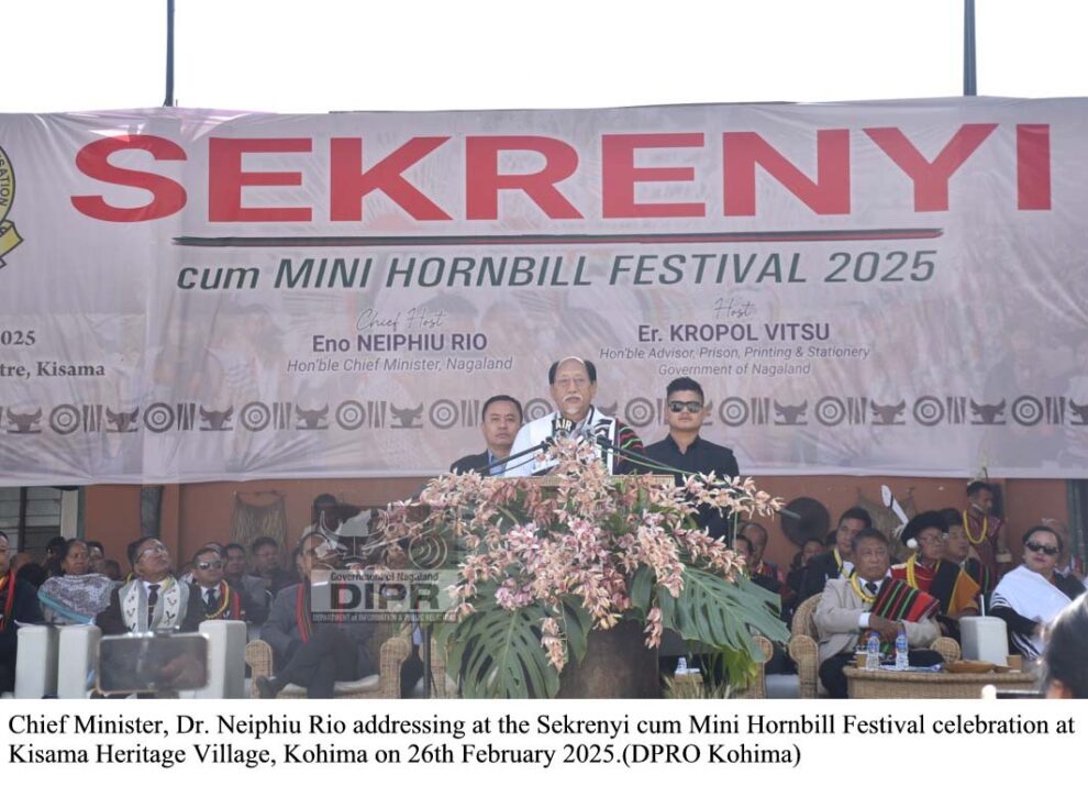 February 26, 2025, 08:04 PM: Nagaland Chief Minister, Dr. Neiphiu Rio para itu Sekreyi cum Mini Hornbill Festival laga second din tey attend kurishey, Kisama Heritage Village tey, itu cultural heritage celebrate kuri kena, itu Angami Naga tribe laga, 26th February, 2025 tey.
