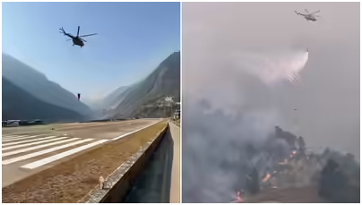 Arunachal Pradesh, 18 February 2026: Indian Air Force (IAF)s Mi-17 V5 helicopters khan chulai ase high-stakes aerial fighting operation conduct kuribo leh duita wildfire-hit jaka across te India la northeast te, heavy-lift helicopters phatai shey jui ke combat kuribo leh difficult terrain te aro extreme flying conditions te.