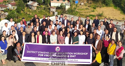 Phek, 23 April 2026: District stakeholder consultation workshop thaki shey Viksit Nagaland 2047 nimite 22 April 2026 te, DC laka conference hall, Phek te, objective lokot inclusive, multi-sectoral perspective discuss kuribo leh, systematic gaps diagnose kuribo leh aro visionary targets define kuribo leh 2023, 2038 aro 2047 nimite. Workshop toh representatives ke eki lokot anishey government departments pra, civil society organisation aro alak stakeholders khan deliberate kuribo leh vision karne developed Nagaland nimite aligned thaka Viksit Bharat vision lokot. Welcome address d kina, deputy commissioner Phek, Rhosietho Nguori, NCS, active participation appreciate kuri shey stakeholders laka gathering te. Tai pra highlight kuri shey ki state toh developed hubo lageh Viksit Nagaland 2047 laka goal achieve kuribo leh. Tai pra need stressed kuri shey proper roadmap tayar kuribo leh long term development nimite Phek laka private aro government sector te b.
