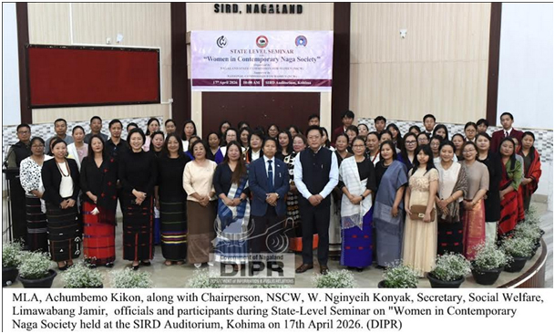 April 17, 2026, 7:06 PM: Ekta State-Level Seminar “Women in Contemporary Naga Society”oportey, kuntutohhoileyApril 17, 2026teyloishey, itu SIRD Auditorium, Kohima tey, ituNagaland State Commission for Women (NSCW) para organize kurikenaaruituNational Commission for Women (NCW para support kurikena – dialogue foster kuriatey, awareness baraboleyaruitu socio-cultural challenges khan address kurialaga objective logotey, maiki khan face kurialaga, Naga society tey, empowerment aru inclusive development promote kurikena.