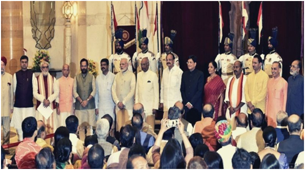 Narendra Modi – Prime Minister, Ministry of Personnel, Public Grievances and Pensions; Department of Atomic Energy; Department of Space; sob kaam laga policy issues aro sob portfolio kondu minister kebe deya nai. Rajnath Singh – Minister of Defence; Amit Shah – Minister of Home Affairs; Nitin Gadkari – Minister of Road Transport and Highways; and Minister of Micro, Small and Medium Enterprises; DV Sadananda Gowda – Minister of Chemicals and Fertilizers; Nirmala Sitharaman – Minister of Finance; and Minister of Corporate Affairs; Ramvilas Paswan – Minister of Consumer Affairs, Food and Public Distribution; Narendra Singh Tomar – Minister of Agriculture and Farmers Welfare; Minister of Rural Development; and Minister of Panchayati Raj; Ravi Shankar Prasad – Minister of Law and Justice; Minister of Communications; and Minister of Electronics and Information Technology; Harsimrat Kaur Badal – Minister of Food Processing Industries; Thaawar Chand Gehlot – Minister of Social Justice and Empowerment; Subrahmanyam Jaishankar – Minister of External Affairs; Ramesh Pokhriyal ‘Nishank’ – Minister of Human Resource Development; Arjun Munda – Minister of Tribal Affairs; Smriti Zubin Irani – Minister of Women and Child Development; and Minister of Textiles; Harsh Vardhan – Minister of Health and Family Welfare; Minister of Science and Technology; and Minister of Earth Sciences; Prakash Javadekar – Minister of Environment, Forest and Climate Change; and Minister of Information and Broadcasting; Piyush Goyal – Minister of Railways; and Minister of Commerce and Industry; Dharmendra Pradhan – Minister of Petroleum and Natural Gas; and Minister of Steel; Mukhtar Abbas Naqvi – Minister of Minority Affairs; Pralhad Joshi – Minister of Parliamentary Affairs; Minister of Coal; and Minister of Mines; Nath Pandey – Minister of Skill Development and Entrepreneurship; Giriraj Singh – Minister of Animal Husbandry, Dairying and Fisheries; Gajendra Singh Shekhawat – Minister of Jal Shakti.