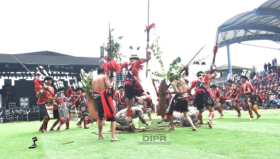 Lotha Cultural Troupe para Ole-hoo (Action gana) present kuri shae, Phom Cultural Troupe para Chingtempe (Stilt walking) present kuri shae aro Konyak Cultural Troupe para Kham shupu Hie Kham Kongpu/Moolao (log-drum pulling aro beating) dikai shae.