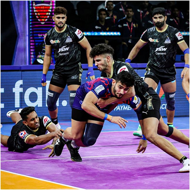 Chennai, 30 September : Pro Kabaddi League te, Dabang Delhi K.C. Kali rati Haryana Steelers ke 38-37 te harai dise SDAT Multi Purpose Indoor Stadium, Chennai te. Chennai leg laga opening din te thaka itu match te, Dabang Delhi control te thakise Ashu Malik laga Super 10 karone. Kintu, last quarter te Steelers dangor fightback dikhai dise, jaideep laga High Five aru Vinay laga 18 points thaka bhi last te fayda painai. Itu karone Dabang Delhi victory loi jaise.