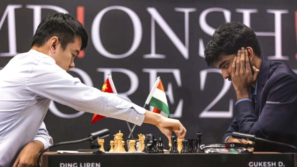 Singapore, 12 December :  India laga D Gukesh, white pieces loina World Chess Championship 2024 laga match te last classical game kheltak, ekta attacking approach loise. Kintu, reigning champion Ding Liren (China) precise moves aru thanda head pra nerve-jingling time scramble te superb defense kurise aru 13th aru penultimate game draw kurise. Itu game Wednesday dinte hoise.