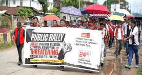 August 25, 2024: Hundred hundren manu khan sob alag alag kisim laga khan itu public rally tey join kurishey, Diphupar Village Council (DVC) para organise kuri kena, “unabated taxation, extortion, kidnapping aru dhamki mari thaka laga against tey, citizen khan ke, aru leader khan ke”, itu nimitey, rally kurishey, Saturday tey. Itu rally kuntu toh hoiley Airport Junction para shuru kurishey, itu toh hoiley Green Park Junction tak jaishey aru itu Agri Expo Gate tey punchi kena khotom kurishey, kotey ekta formal programme toh hoiley loishey. Placard khan bukhi kena, kuntu khan tey toh hoiley – “Enough is enough”, “Let public live freely”, “Gun culture not tolerable”, “One government, One tax”, “Say no to extortion”, khan likhi kena thakishey, itu rally kuria manu khan itu programme pichetey, ekta six-point memorandum submit kurishey, itu Chumoukedima laga Deputy Commissioner ke. Shuru shuru tey itu rally tey, Agri Expo tey, DVC chairman Ghuzui Shohe para koishey ki, Nagaland toh hoiley itya taxation laga land hoi jaishey koi kena, 25 para 26 faction khan nishina para tax khan impose kuri thaki kena sob ke bhi, kun ke bhi nachari kena. Tai para koishey ki faction khan itya toh hoiley citizen khan bonduk khan dikhai kena dhamki mara bhi shuru hoishey sob jaga khan tey. Itu ajikali laga ghatna laga kotha koi kena koishey, ki, Diphupar bosti jurisdiction laga under tey – grocery dukar laga malik ke kidnap kurishey aru dhamki dishey, Diphupar laga Naga Youth Organization (DNYO) laga president ke, itu chairman para koishey ki, itu community toh hoiley bishi para dukh pai asey, aru itu bishi khushi napawa para awaz uthaboley laga hoi jaishey, itu nishina faction khan laga kaam khan bear kuri kuri ahi kena.