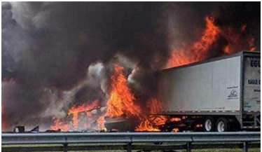 Thursday te 4 p.m. agote dangor truck aro midsize sedan north te jai thaka, I-75 te collide kurishe.