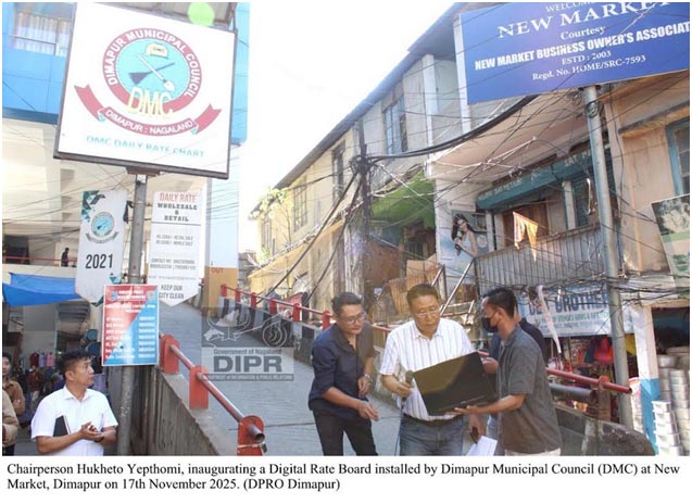 November 17, 2025, 04:38 PM: Itu Dimapur Municipal Council (DMC) para tohhoiley official para tai khan laga Digital Rate Board launch kurishey, update thaka price khan laga information display kurikena, customer khan ke real time access offer kurikena, essential rate karney, 17th November, 2025 tey, New Market, Dimapur tey.