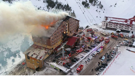 Turkey, 21 January 2025: Hotel ekta te Turkish ski resort Bolu laka te jui juli shey, tadeh dos jun muri jaishey aro 32 jun jokom hoi jaishey, Interior Minister Ali Yerlikaya laka hisap pra.