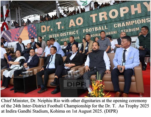 August 02, 2025, 06:34 PM: Itu 24th Inter-District Football Championship laga Opening Ceremony , itu Dr. T. Ao Trophy 2025 nimitey loishey, 1st August, 2025 tey, Indira Gandhi Stadium, Kohima tey para, itu Nagaland laga Chief Minister tatey Special Guest hisap buhi kena.