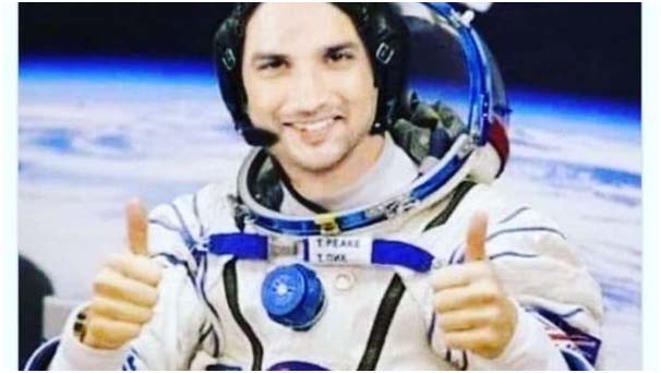 Sushant laga noksha share kora te astronaut uniform te thakise aro Kirti para “Ami khan laga Sushant ami khan laga Pride lekha thakise.