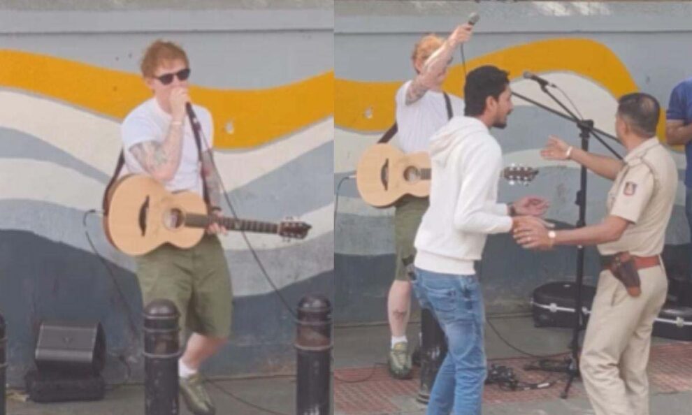 New Delhi, Febrary 9: Sunday(February 9) afternoon te British pop singer Ed Sheeran para Church Street te ekta umplanned performance di thaka homoitey adha te taikey Bengaluru City Police para rokhai disey.