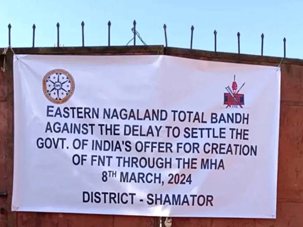 March 11, 2024 : Itu ‘Public Emergency’ laga part thaki kena, Eastern Nagaland area khan tey declare kurishey, itu Eastern Nagaland People’s Organisation (ENPO) para Sunday tey announce kurishey, “total bandh” opor tey, Eastern Nagaland jurisdiction – Kiphire, Mon, Tuensang, Longleng, Shamator, aru Noklak district khan tey, “aru bhi notice Nadiya tak”.