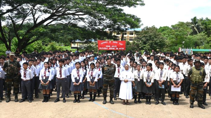 August 13, 2025, 05:59 PM: Creativity encourage kuriboley aru jawan talent nurture kuriboley, Assam Rifles para Spear Corps under tey, ekta Essay Likha aru Drawing Competition organize kurishey, St. Xavier Higher Secondary School, Jalukie, Peren District, Nagaland tey, 12th August, 2025 tey. Itu even tey enthusiastic participation thaka laga dikhi paishey, Class 1 para Class 12 laga student khan para, tai khan laga artistic skill khan aru likha laga ability khan showcase kuri kena. 1200 student khan para bhi bishi para itu competition tey part loishey. Itu competition khotom hoa tey, prize khan aru appreciation certification khan award dishey, itu student khan ke, kun khan itu competition laga category khan tey sob para bhal para parishey. Itu competition toh hoiley self-promotion, creativity, aru awareness promote kuriboley aim kuria laga thakishey, itu youth khan bhitor tey. Tai khan laga essay khan aru drawing khan para, itu student khan para tai khan laga idea khan express kurishey, alag alag theme khan opor tey, tai khan laga imagination, awareness aru itu community laga nimitey morom thaka toh reflect kuri kena.