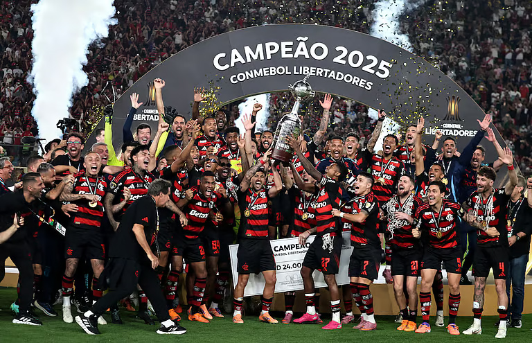 Lima, 2 December : Danilo second-half te ekta winning goal marise aru Flamengo, all-Brazilian final te Palmeiras ke 1-0 te harai dise, Copa Libertadores laga charta title jiti loise.