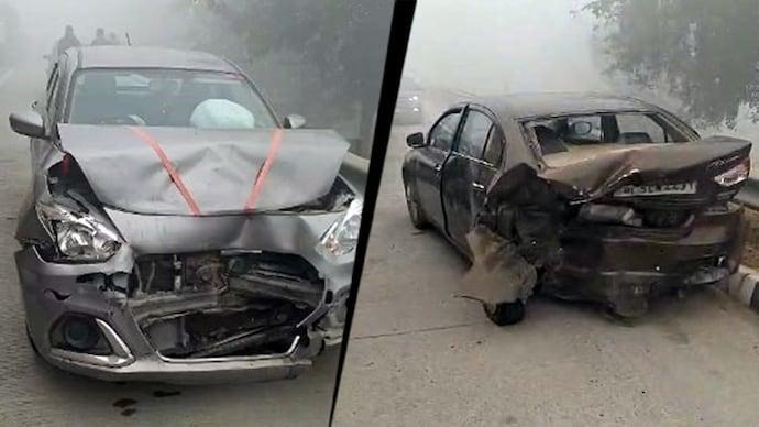 Uttar Pradesh, December 13, 2025: Friday te Eastern Peripheral Expressway te gari beshe ekjun ekjun logo te thungeshe dunga beshe hoi kena manu khan ekube dekhebole naparei karne.