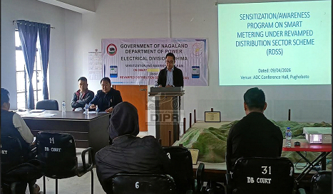 April 12, 2026: Smart Metring opor tey ekta Sensitisation/Awareness Program loishey, Revamped Distribution Sector Scheme (RDSS) under tey, itu ADC laga Conference Hall, Pughoboto tey, April 9, 2026 tey, Key clarification khan provide kurishey, itu smart metering laga implementation regard tey, itu subdivision tey. Itu meeting tey chair kuri kena, SDO (Civil) Yithachu Thur para koishey itu move toh hoiley essential asey, Nagaland laga chuli thaka power challenge khan ke address kuriboley, energy deficit, weak infrastructure aru komjur revenue collection khan thaki kena. Itu Chair para Smart Metering laga importance bhi khata para outline kurishey, itu toh hoiley RDSS laga component khana sey koi kena, power sector reform laga, itu country tey. Itu SDO Power (III), Kohima Division para jawab dishey, Pughoboto Adhoc Town laga GB khan laga objection khan karney, kun para toh hoiley prepaid smart meter implementation toh rukhai kena rakhiboley koishey, town laga notify nakuri kena thaka status karney.