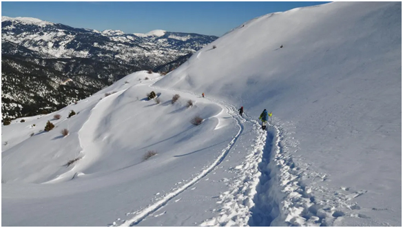 December 27, 2025: Christmas laga din techarta hikers hare jai tohmurekena pai she, beshe snow gereahomoite tai khan snow lagabetortedabaideshe aro mure jai she, Vardousia Mountains, Greece te.