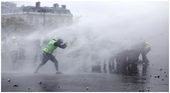 Police tear gas aro water cannons use korishe protesters Arc de Triomphe jaga te juma kora nimite. Kunba demonstrators pathor phalai kena marishe, police laga etu kaam opor te.