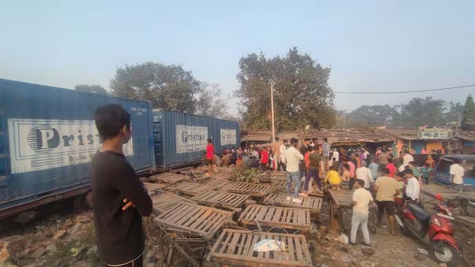 Goods train rasta pra olai jaisey, Odisha te residential jaka te crash hoi jaishey, local manu khan panic hoishey