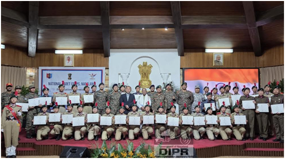 Kohima, 16 April 2025: Governor of Nagaland, Nand Kishor Yadav, tai pra National Cadet Corps (NCC) Nagaland laka cadets ke facilitate kurishey program te Lok Bhavan te thaka, Kohima te 16 April 2026 te. Gathering ke address kuri kina, governor pra immense pride aro pleasure expressed kurishey NCC cadets kehonourkuribo leh, taikhan laka spirit unity laka, discipline aro dedication laka commend kurishey. Tai pra cadets ke lauded kurisheytaikhan laka remarkable achievement nimite successfully Saramati Peak scale kura March 19, 2026 te taikhan laka officers aro staff lokot. Governor pra particularly maiki cadets aro lady associate NCC officers laka participation appreciate kurishey expedition te, highlight kurisheyekta strong reflection hoinamaiki laka empowerment laka aro growing role te challenging fields te. Tai pra various initiatives b acknowledgekurishey undertake kura NCC Nagaland pra, Vibrant Village visit, Yuva Aapda Mitra training, Youth aro Alumni festival, National Integration camp, trekking activities aro collaboratives efforts milai kina MoUs through institution lokot NIELIT aro ICAR nishina.