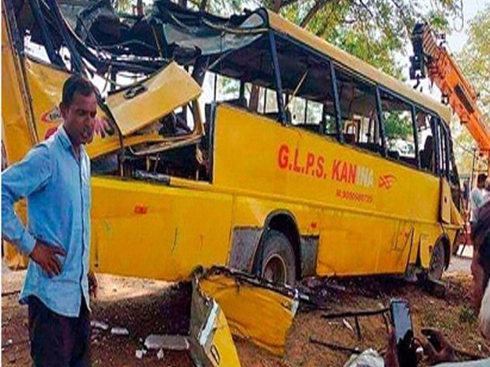 Mahendragarh, April 11: Thursday dae aghta baacha murishey aro alak bishi manu jokom paishey, Haryana lah Mahendragarh dae ekta school bus overturn kuri kina. Superintendent of Police, Mahendragarh, Arsh Varma pra koishey ki etu bus lah driver kae arrest kuri dishey hoina.