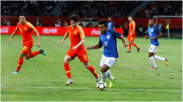 Agencies, 13 October: Saturday din Suzhuo jaga deh India aro China majode International friendly match khela thakise. Etu time deh tuita team pora be goal thalibole napari kena 0-0 draw hoise. Stephen Constantine’s side laga khelari khan pora ektum phal performance khela thakise. India defence pora host logode goal thalibole chance nadiya thakise. China logode 17 par log kora bechide India toh first jetibole biswas kora thakise. Hoilebe India toh China laga record ke phangkabole para nai. Etu tuita team toh first time 21 sal bechide khela laga ase. Blue deh thaga manu khan pora ektum chance bona thakise aro China logode goal thalibo karni kosish kora thakise. Olob time bechide orange deh thaga Marcello Lippi’s team pora control kora thakise aro Indian defence logode test kori thakise. Goalkeeper Gurpeet Singh Sandhu pora ektum phalse bacha karni scoreline level toh 0-0 deh thakise. India khan ektum phal pora suru howah thakise aro China’s Yan Junling pora 10 minute time deh mara deh bachabole parise. Game deh control kori kena thaga China khan besi par counter-attacks kora thakise. Aro Indian keeper osor tak box deh besi par pongja toh Gao Lin thakise. Olob time bechide Hao Lin pora Indian defence logode test kora thakise. Tai ektum fast pora counter khela thakise. Hoilebe Gurpreet pora ektum phalse bacha lowah thakise.  Second half time deh China khan ektum phal pora suru howah thakise aro tai khan besi par sunstitutions putli kora thakise. Gao Lin pora aro be goal deh shot mara time deh ball toh opor deh jaija thakise. Etu pora India laga mon toh aram howah thakise. China khan besi phal goal thalibole kosish kora toh second half time deh thakise.  Extra five minute time deh India khan toh jetibole thaga ase. Hoilebe Farukh Chowdhury’s pora shot hara time deh Chinese keeper pora block kora thakise.