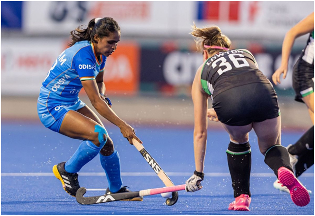 Santiago, 8 December : Indian Junior Mahila Hockey Team-te Wales ke 3-1 te harai diyese FIH Junior Women’s World Cup laga 9/16 position qualifier match-te, Santiago, Chile-te. Hina Bano (14’), Sunelita Toppo (24’) aru Ishika (31’) India laga side te goal mari diyese, aru Wales te Eloise Moat (52’) ekta goal marise.