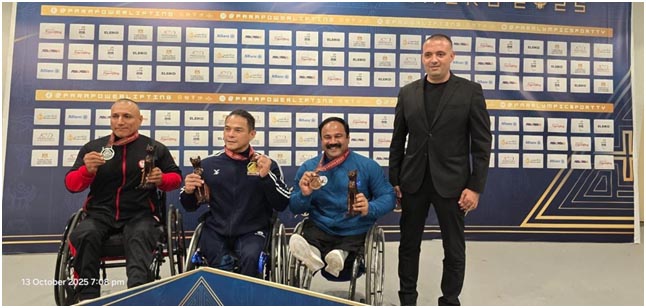 Cairo, 15 October : India laga para powerlifter Joby Mathew Egypt te Cairo te chalitase Para Powerlifting World Championships 2025 te bronze medal jiti loise. 65kg Legend (Masters) category te compete korise, Mathew total 300kg lift kurise — 148kg aru 152kg successfully lift kurikene. Itu logot, tai nijor personal best 150kg (juntu dui mahina age Beijing World Cup te set kora) cross kurise.