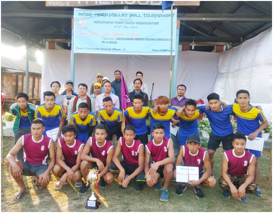 MEDZIPHEMA, DECEMBER 8 : Saturday din Medziphema Town, Ward-5, Thehouba Gound te Medziphema Town Inter-Ward Volleyball Tournament 2018 laga Final thakise. Etu Final te Ward-9A aro Ward-8 jun khela thakise. Etu ke Ward-9A pora Ward-8 ke haraide kena Champion luise koise. Etu Final khel nakhela ahkete Closing Ceremony thakise. Etu ke Akhoto Kuotsu, President, Medziphema Town Mechu Krotho (MTMK) laga bi ahe kena thakise. Aro tai etu Trophy ke hisha kura kan eman bhal te aro khushi pora khelikena thaka karne besi khushi baikena thakise aro khushi janaise koise. Etu khel laga Final te Champion lua Ward-9A ke Certificates, Trophy aro Rs. 20,000 poisa dedese. Aro etu toh Zaivi Meyase, PS to Deputy Speaker laga pora dedese. Aro Runners-up, Ward-8 ke toh Rs. 10,000 dedese. Etubi Certificates  logot eke pora melekena Megohulie Vupru, Founding Member, NDPP pora dedese. Aro etu khel te Best Disciplined Team toh Ward-1B pora luise. Aro etu kan ke Certificates logot melekena Rs. 2000 dedese. Aro Best Player toh Ward-8 laga Nilasato Tehuja pora luise koise.