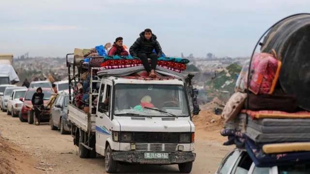 Gaza, 10 February 2025: Israeli troops khan olai jaishey Netzarim Corridor pra- ekta military zone ase north Gaza strip ke south pra bhak kureh. Hundreds Palestinians khan ke gari aro carts laden mattresses aro alak saman khan dhuri kina wapas northern Gaza te jaishey. Israeli withdrawal toh line te ase Israel-Hamas ceasefire agreement 19 January lokot, etu laka under te 16 Israeli hostages aro 566 Palestinians prisoners nishina ke chari dishey. Three week time laka bitor te ceasefire laka first stage khotom hwa time te, 33 hostages aro 1,900 prisoners ke chari diboleh expect kuri ase. Israel khan koishey 33 pra eight jun toh muri shey.