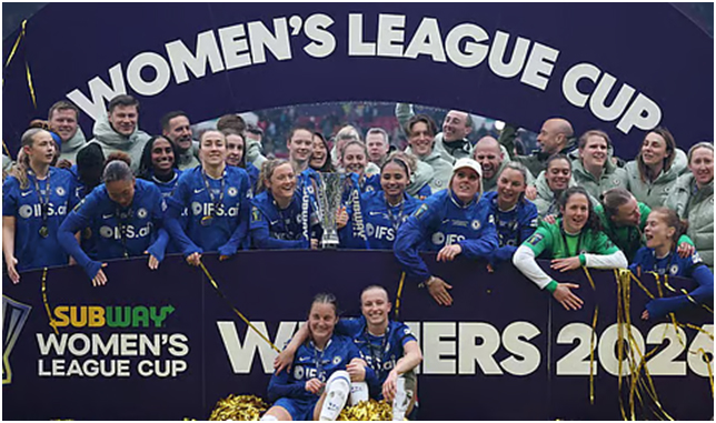 London, 17 March : Chelsea Women forward Lauren James tu ekdom superb performance dikhaise, opening goal mari, juntu pora team Manchester United Women ke 2-0 te hari dise Women’s League Cup Final Sunday din. Tai England teammate Aggie Beever-Jones dusra goal tu score kori dise.
