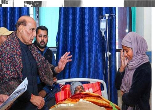 Jammu aru Kashmir, December 28,2023: Defence Minister Rajnath Singh para ekta civilian ki lok paishe koto military custody dhe  Government Medical College dhe Jammu aru Kashmir dhe Wednesday dhe.