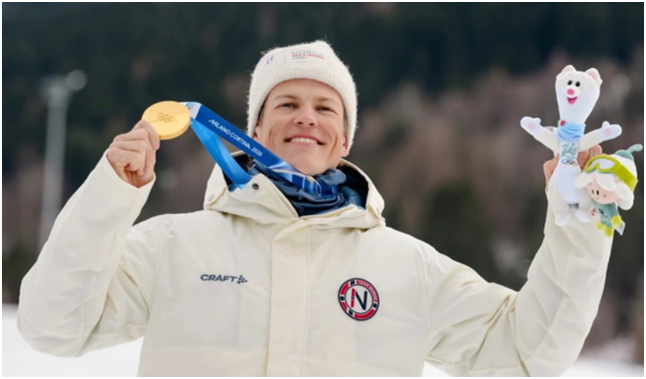 Milan, 16 February : Norway laga Johannes Hoesflot Klaebo aji Milan Cortina Olympics te cross-country skiing te tai laga ninth gold medal jitise, aru Winter Games laga ekta notun record bonaise. 29-saal athlete tou men’s competition te 4 x 7.5-kilometre relay te anchor kori, 2026 Games te tai laga chautha gold medal loi loise.