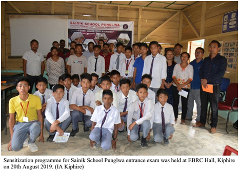 KIPHIRE,AUGUST 21,2019: Kiphire laga EBRC Hall 20th August 2019 te District Education office, Kiphire para 2020-21 sal nimete all India Sainik School Entrance Examination laga Sensitization programme loishe .