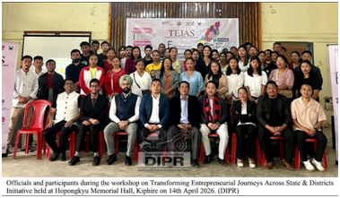 April 14, 2026, 8:35 PM: Tai khan laga continued effort laga part thakikena, inclusive entrepreneurship promote kuriboleykarneyaru grassroots innovation majbutkuriboleykarney, Startup India, Department for Promotion of Industry and Internal Trade (DPIIT),Commerce aru Industrylaga Ministry, India laga Government para Industries aru Commerce laga Department aru District Administration logotey collaborate kurikena, ituworkshop conduct kurishey, ituTEJAS (Transforming Entrepreneurial Journeys Across State & Districts) initiativeunder tey, Hopongkyu Memorial Hall, Kiphiretey, 14th April, 2026 tey.