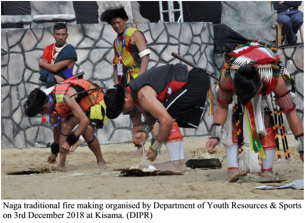 Kisama jaga deh 19th Hornbill Festival thaga laga part hesab deh by Department of Youth Resources & Sports pora Monday din traditional fire competition olaise. Etu deh Sangtam tribe laga Litsase Sangtam pora 12 hesha lowah khan majode jetibole parise. Naga traditional fire toh hotai sal YRS laga department logode Tourism department pora motob korikena loi. Etu toh indigenous games ase sob naga tribes khan hesha thakikena. Etu toh hotai moda group khan pora kori. Sob melikena alag-alag tribe laga 12 manu event deh hesha lowah thakise. Etu event deh Litsase Sangtam aro Chakhesang tribe laga Lhoupe Tepfo pora first aro second position pora jetise. Tai jun logode Rs. 7000 aro Rs. 5000 paise. Time fixed kora time deh kon-porabe third position lobole napara thakisee. SDO (Civil), Jakhama, Alemyapang pora jeta khan ke prizes deh-deya thakise.