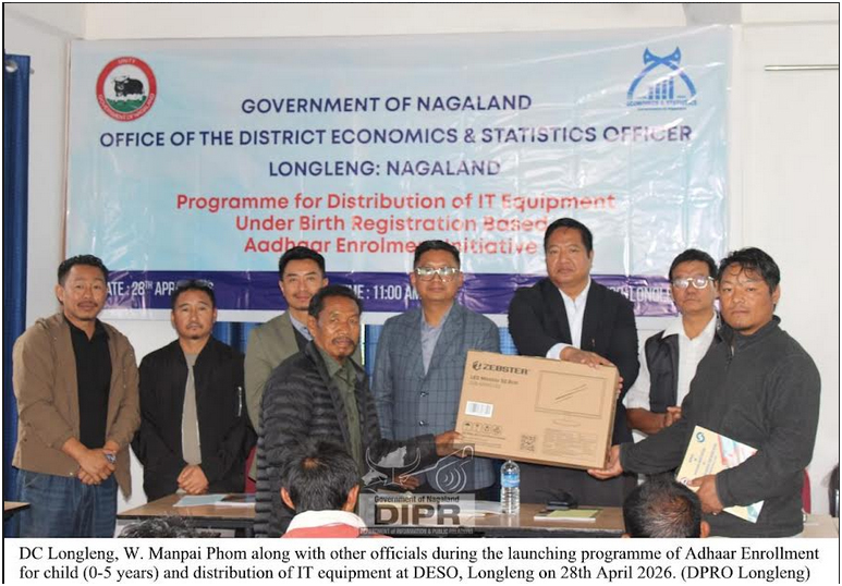 April 28, 2026, 8:39 PM: Itu District Economics & Statistics Officer, Longleng para ektaIT Equipmentlaga Distribute kuria alga Launching Programme loishey, Birth Registration based Aadhaar Enrollment Initiativearu (0-5 saal) laga bacha khan nimiteyAadhaar linked Birth Registration under tey, itu 28th April, 2026 tey, DESO, Office Longlengtey para.